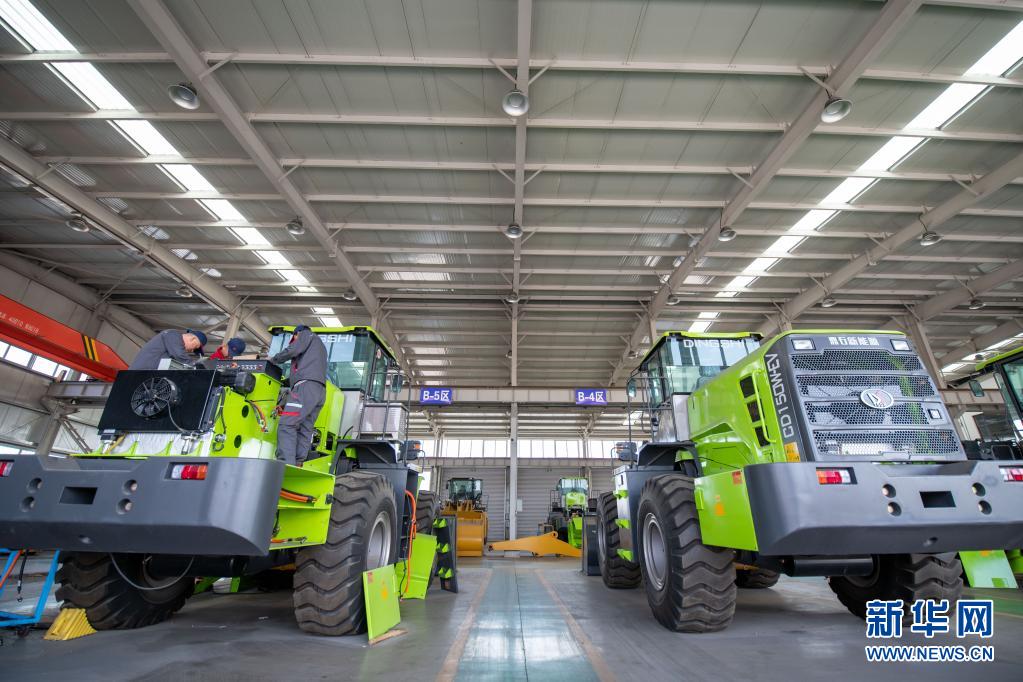 3月27日,位于唐山市古冶区的唐山鼎石汽车制造有限公司,工人在电动装载机生产线上工作。