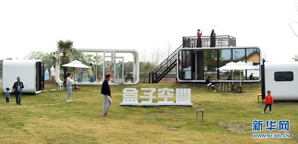 3月27日,游客在莲花乡村国际未来社区“盒子空间”参观。