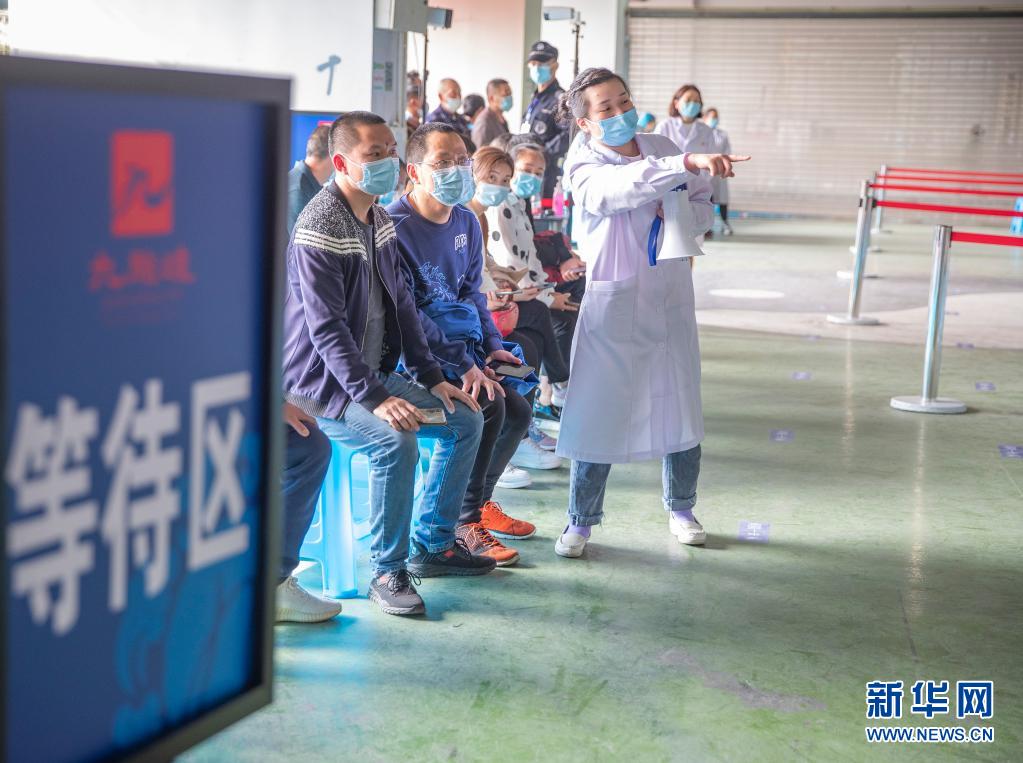 3月27日,在重庆市九龙坡区奥林匹克体育中心新冠疫苗临时集中接种点,居民在等待区等候接种新冠疫苗。