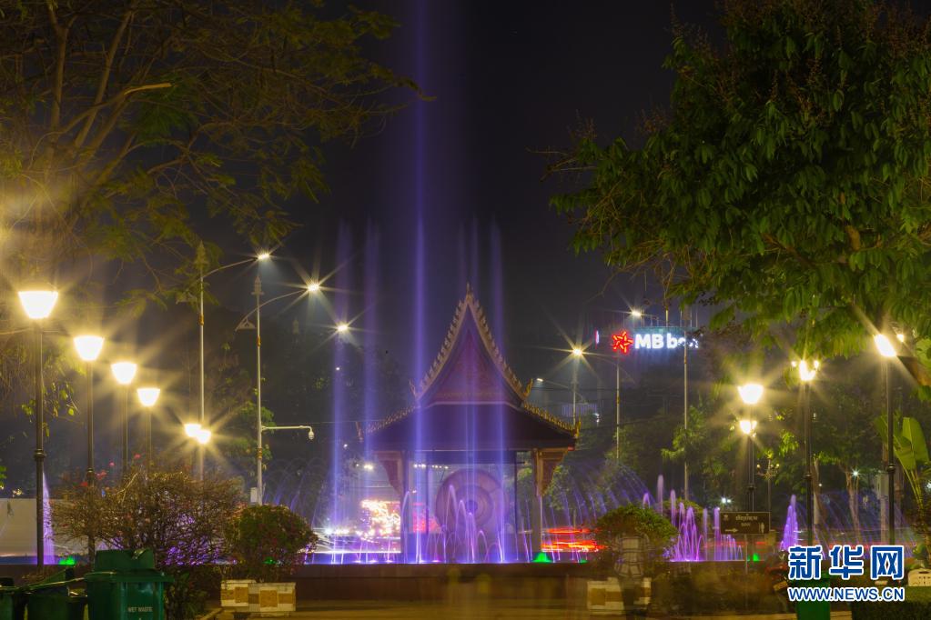 中国政府援老挝首都万象市中心城区点亮工程项目交接仪式26日晚在万象举行。点亮工程项目包括对万象凯旋门广场喷泉、灯光、音响系统的升级改造和万象市中心城区7条道路照明改造等。新华社发(凯乔摄)