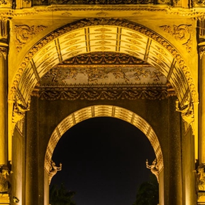 这是3月26日在老挝首都万象拍摄的亮灯后的凯旋门广场。