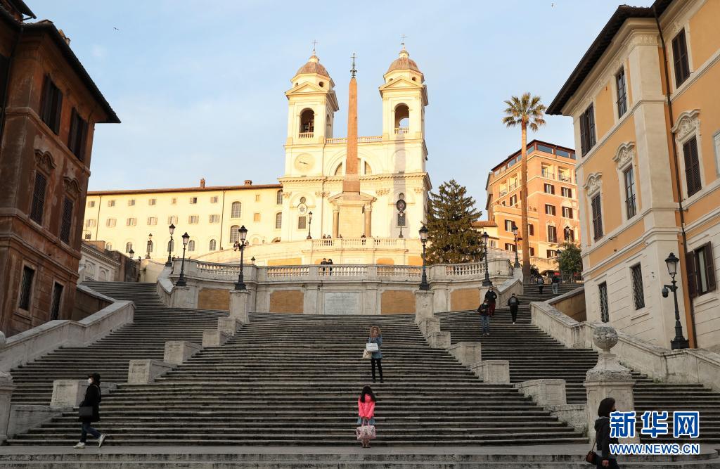 3月27日,人们走过意大利首都罗马的西班牙台阶。