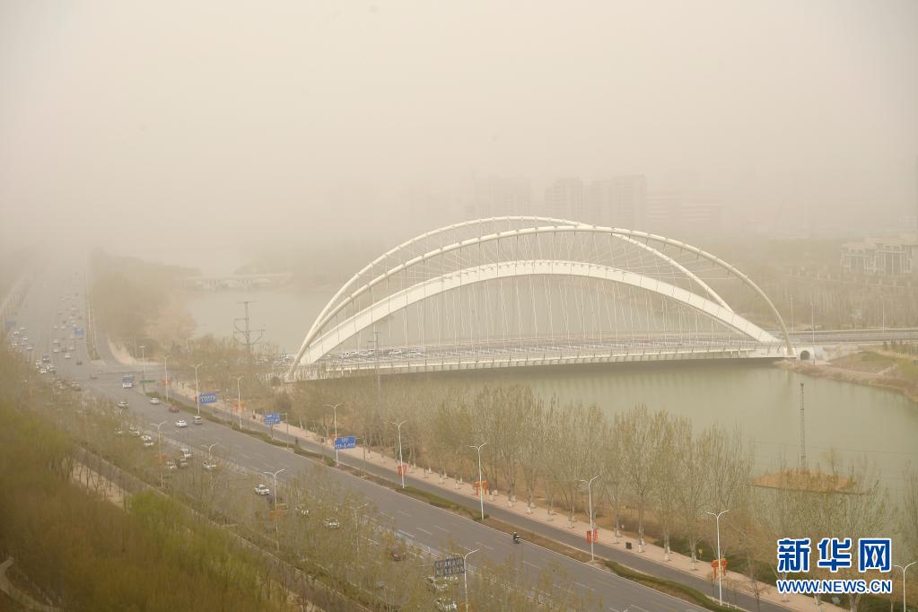 沙尘中的宁夏银川市一角(3月28日摄)。