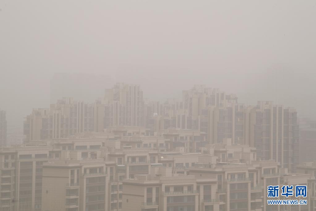 沙尘中的宁夏银川市一角(3月28日摄)。