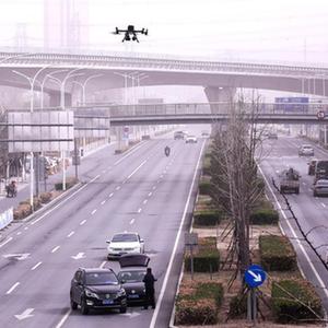 3月28日,在北京市门头沟区,无人机在进行交通巡逻。