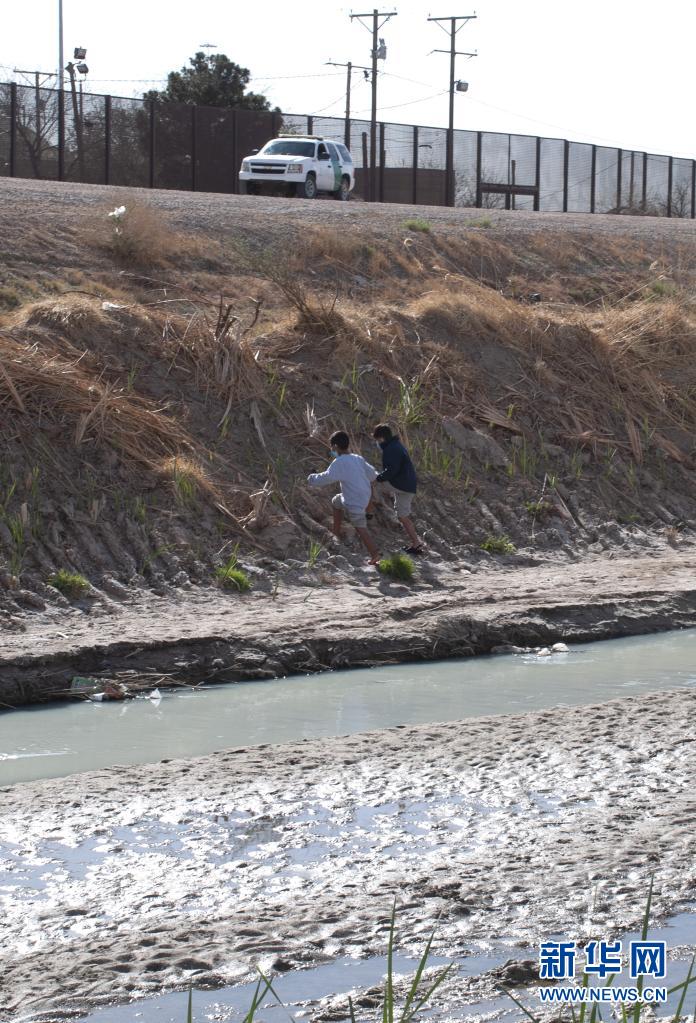 这张3月27日在墨西哥华雷斯拍摄的照片显示,两名来自危地马拉的移民儿童跨越美墨边境的里奥格兰德河,试图进入美国。