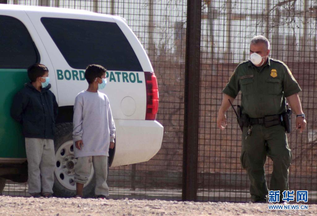 这张3月27日在墨西哥华雷斯拍摄的照片显示,两名来自危地马拉的移民儿童在跨越美墨边境的里奥格兰德河后,等待接受美国边境巡逻队人员的处理。