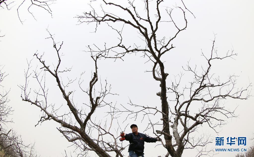 3月28日,枣农在黄骅市齐家务镇聚馆古贡枣园给冬枣树剪枝。