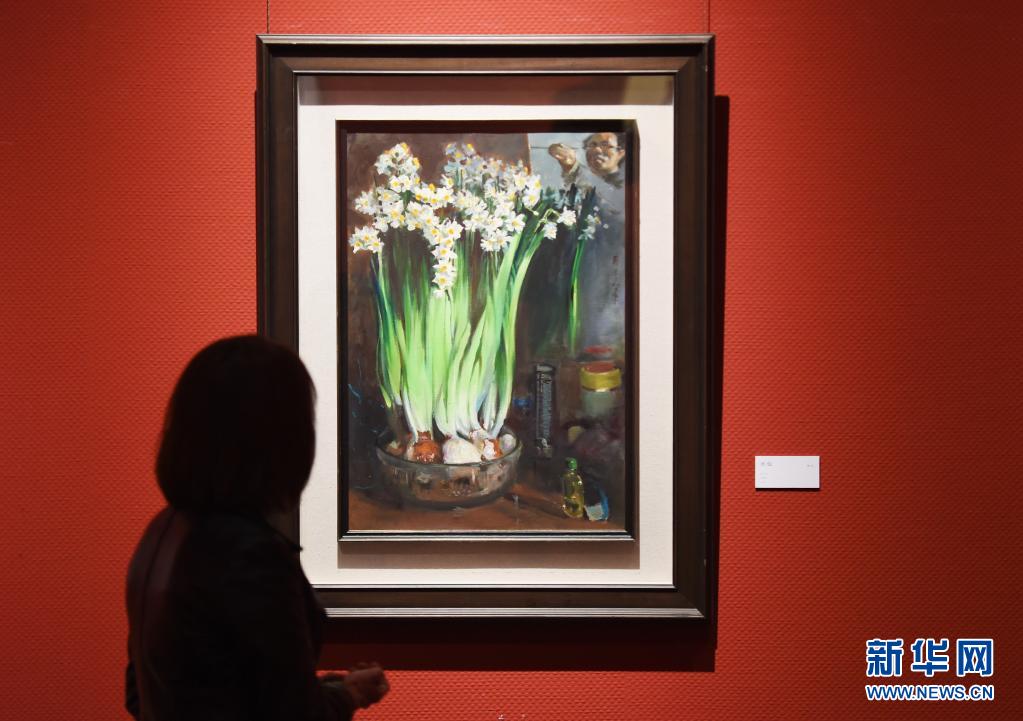 3月28日,参观者在欣赏展出的作品。