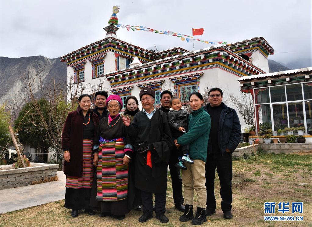 昌都市芒康县盐井纳西民族乡的家中,85岁的昂旺尼玛享受着四代同堂的天伦之乐(2月18日摄)。新华社记者 孙非 摄