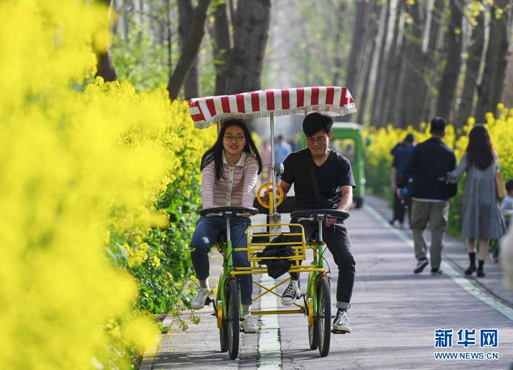 3月28日,游人在合肥滨湖国家森林公园内游览。