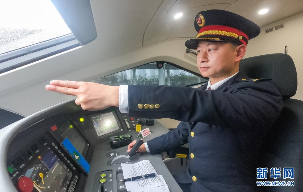 “80后”火车司机丁志中在驾驶动车(2020年12月28日摄)。新华社发(江晓 摄)