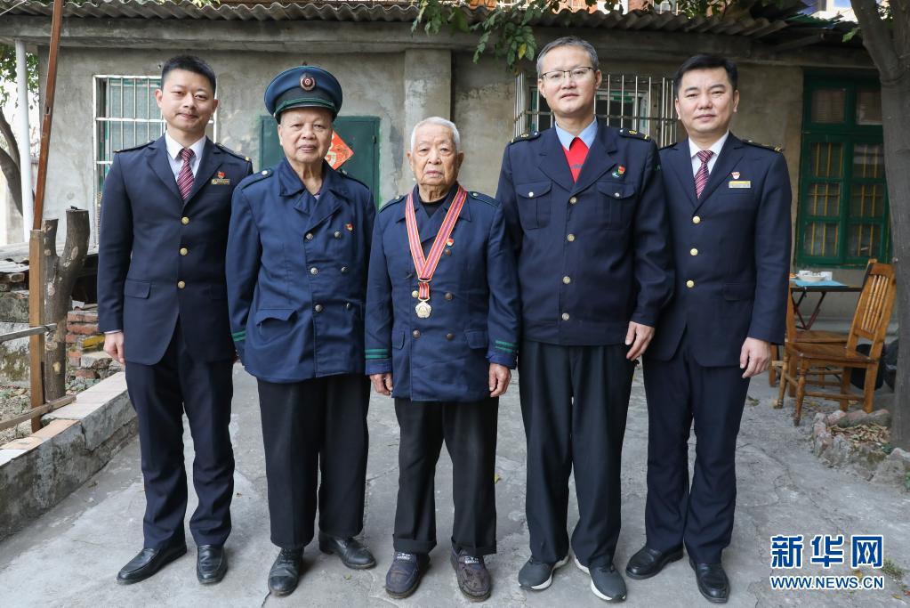中国铁路南宁局集团有限公司柳州机务段的5名火车司机师徒合影(2月7日摄)。左起:丁志中、曹之耀、任忠德、尤永旭、林斌。新华社发(江晓 摄)