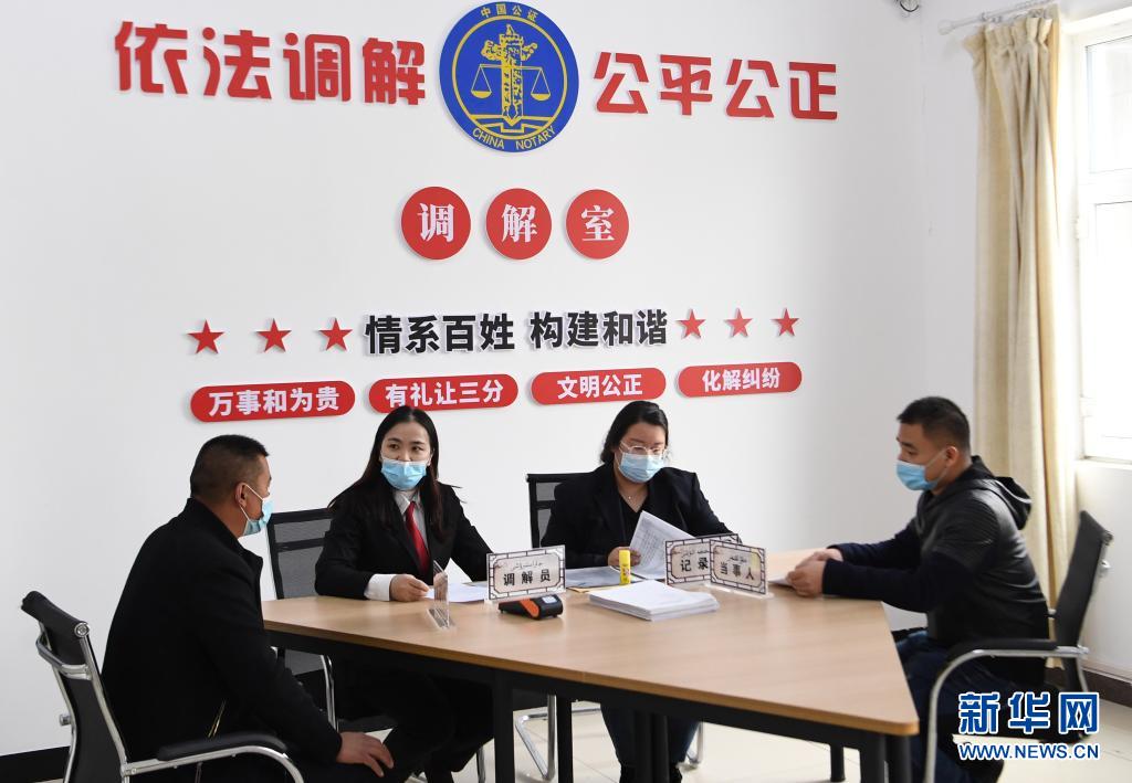 3月28日,新疆阿勒泰市人民法院司法辅助中心工作人员在调解矛盾纠纷。