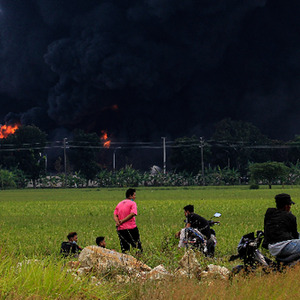 3月29日,印度尼西亚西爪哇省南安迪县发生火灾的炼油厂冒出滚滚浓烟。