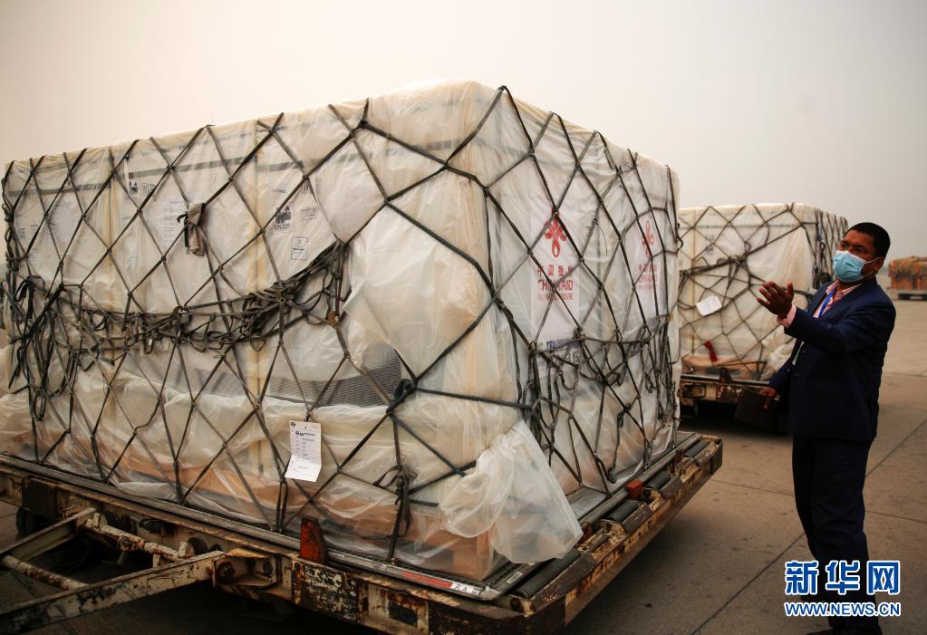 3月29日,工作人员在尼泊尔加德满都特里布万国际机场查看运抵的疫苗。