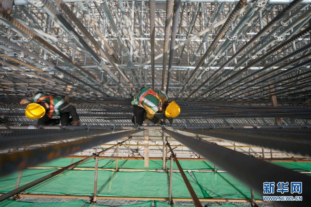 3月30日,中铁十一局的工人在河北雄安新区容东片区建设调蓄池。