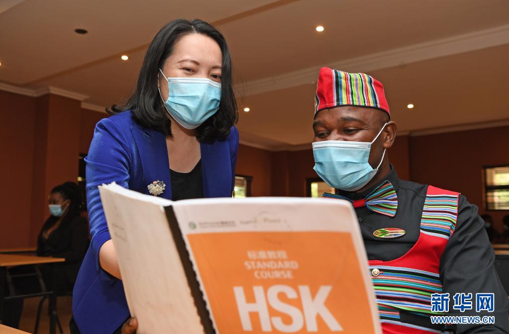 3月18日,约翰内斯堡大学孔子学院院长彭奕在南非比勒陀利亚为学员解答疑惑。