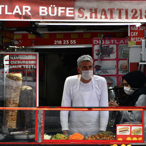 3月30日,人们走过土耳其伊斯坦布尔一家餐厅的露天区域。