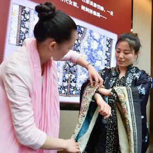 3月30日,在北京服装学院,毕红同师生分享中国传统服饰之美。