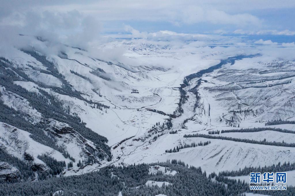 当日,一场春雪过后,新疆沙湾市南部的天山山脉一片银装素裹。苍山覆雪、云雾缭绕,如同一幅幅水墨画般动人。