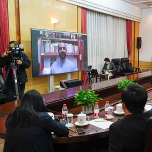 3月30日,记者在北京通过视频连线采访有关外宾。新华社记者 陈晔华 摄