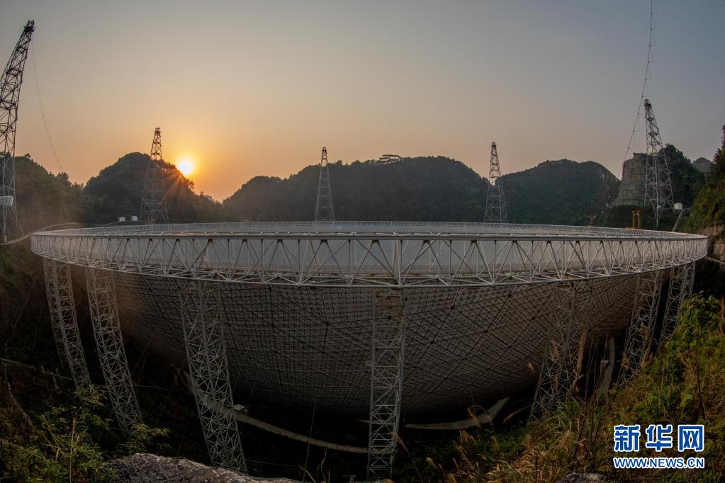 3月29日拍摄的晚霞中的“中国天眼”(维护保养期间拍摄)。