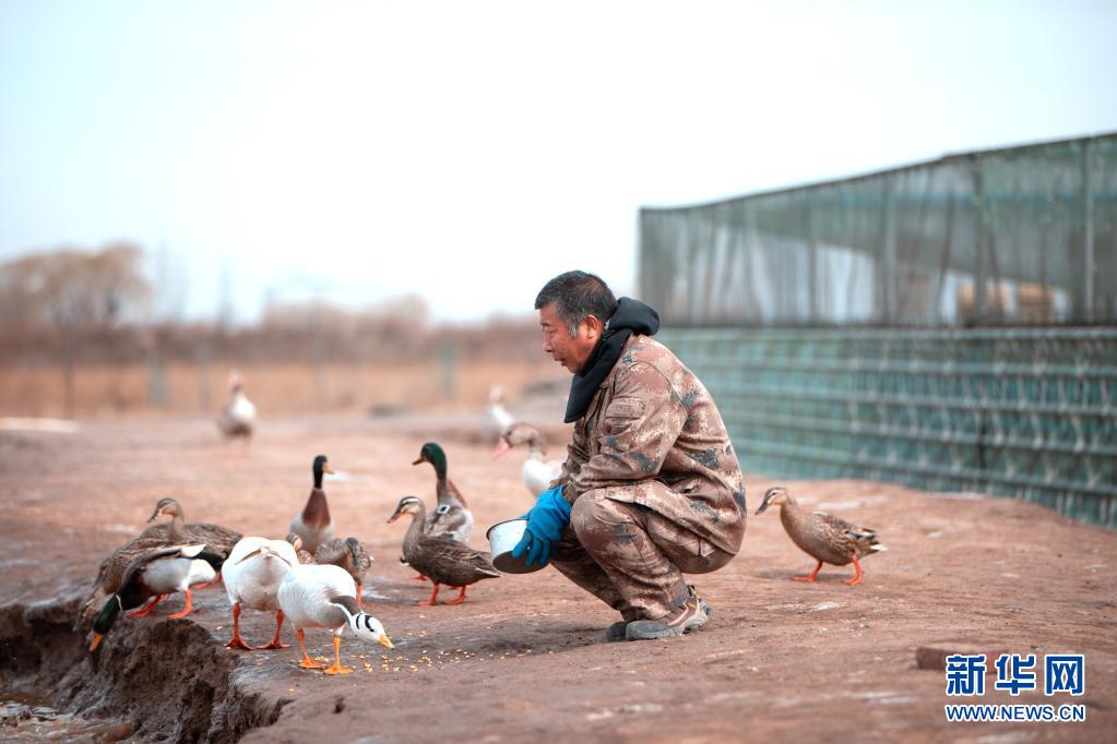 3月29日,老田在大清河救助站喂鸟。新华社发