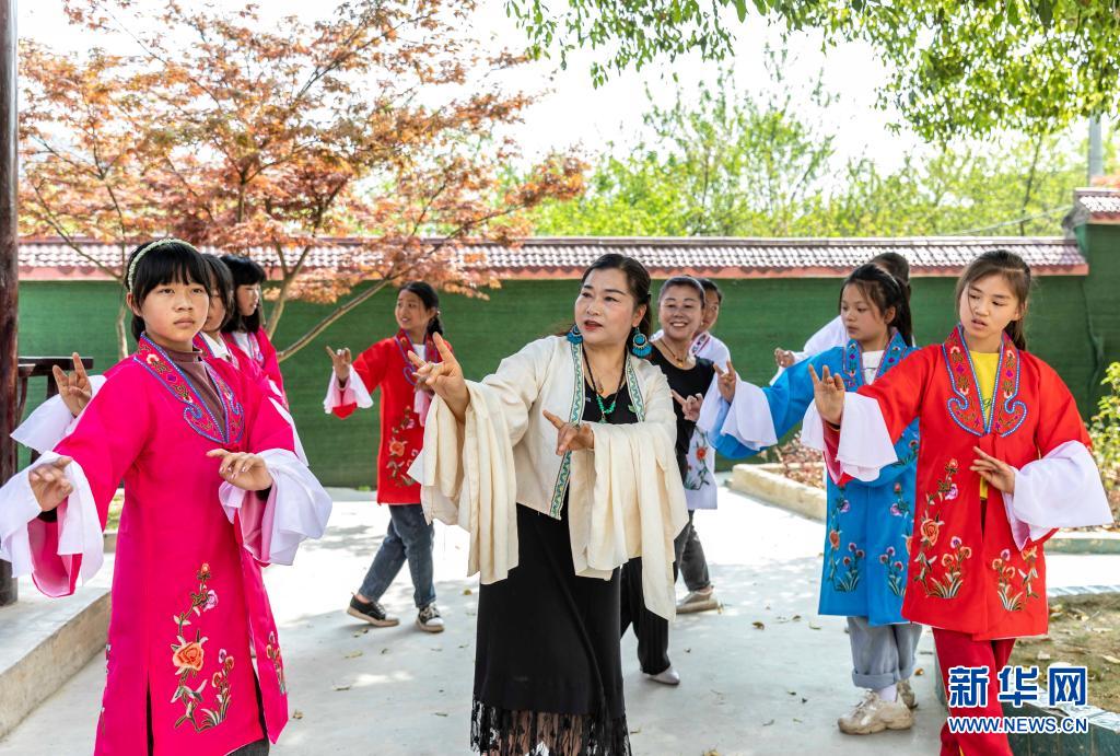 3月31日,天坪小学学生在学习地方戏曲文琴戏。