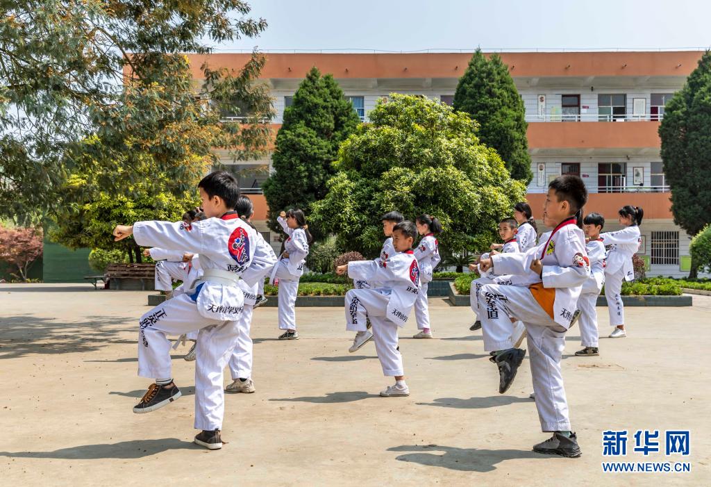 3月31日,天坪小学学生在进行跆拳道训练。新华社发(范晖 摄)