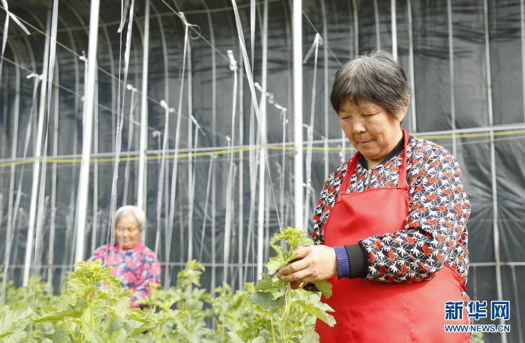 3月31日,新河县新河镇五里铺村村民在大棚里给甜瓜打杈。新华社发(张驰 摄)