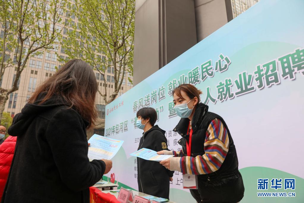 3月31日,志愿者向求职者讲解劳动保障相关政策。