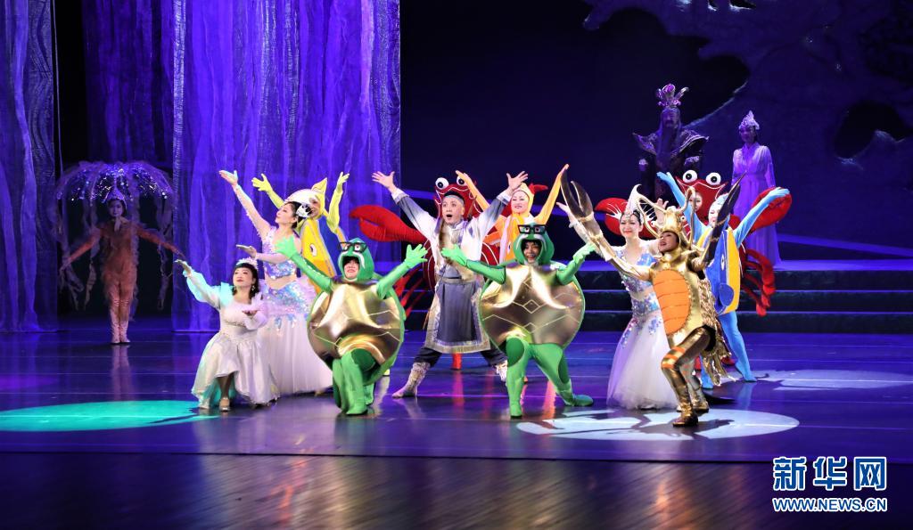 3月31日,兰州市儿童艺术剧团的演员在表演儿童剧《海力布》。