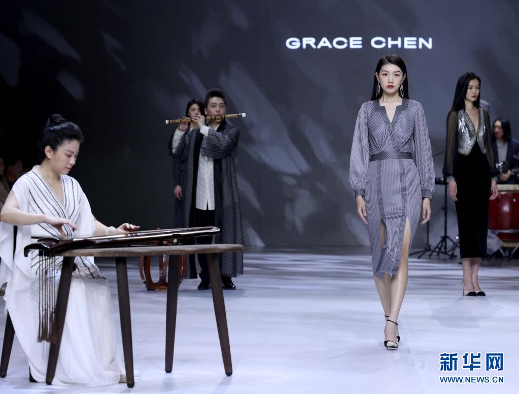 3月31日,模特在北京举行的2021秋冬中国国际时装周“GRACE CHEN 高级时装·Grace Chen”发布会上,展示时装设计师陈野槐设计的时装。新华社记者 陈建力 摄