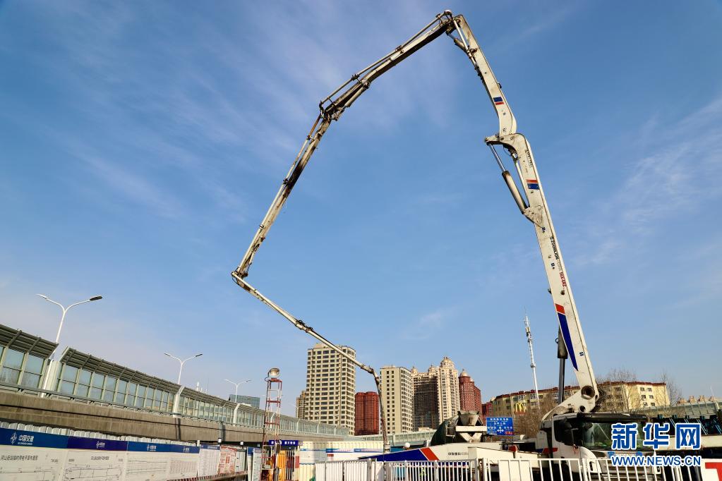 3月31日拍摄的哈尔滨地铁3号线河山街站施工现场。