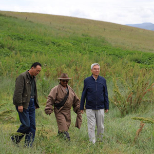 游客在甘肃省玛曲县河曲马场上游览(2019年6月22日摄,无人机照片)。新华社记者 陈斌 摄