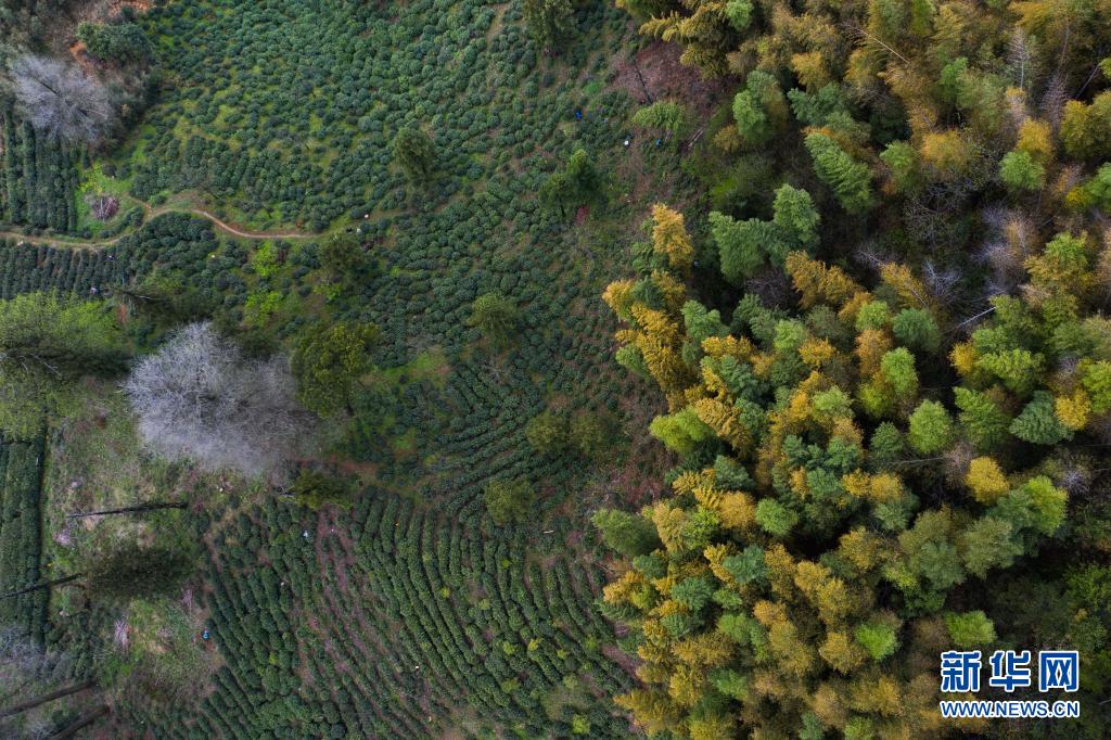 4月1日,空中俯瞰东坑村的高山有机茶种植区(无人机照片)。新华社记者 徐昱 摄