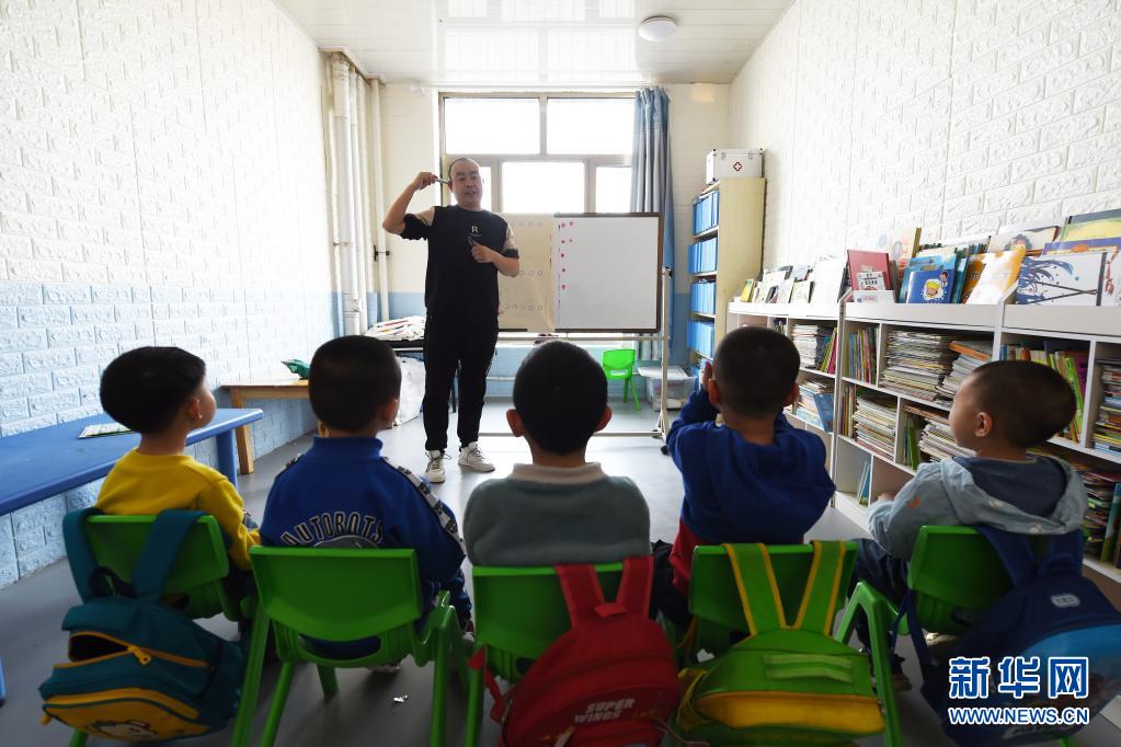 在兰州欣雨星儿童心理发展中心,丁强给孩子们上游戏课(3月29日摄)。