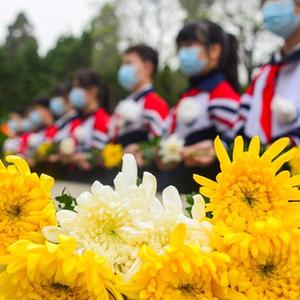 4月1日,华蓥市双河第三小学学生在华蓥山游击队革命烈士纪念碑前开展缅怀先烈活动。