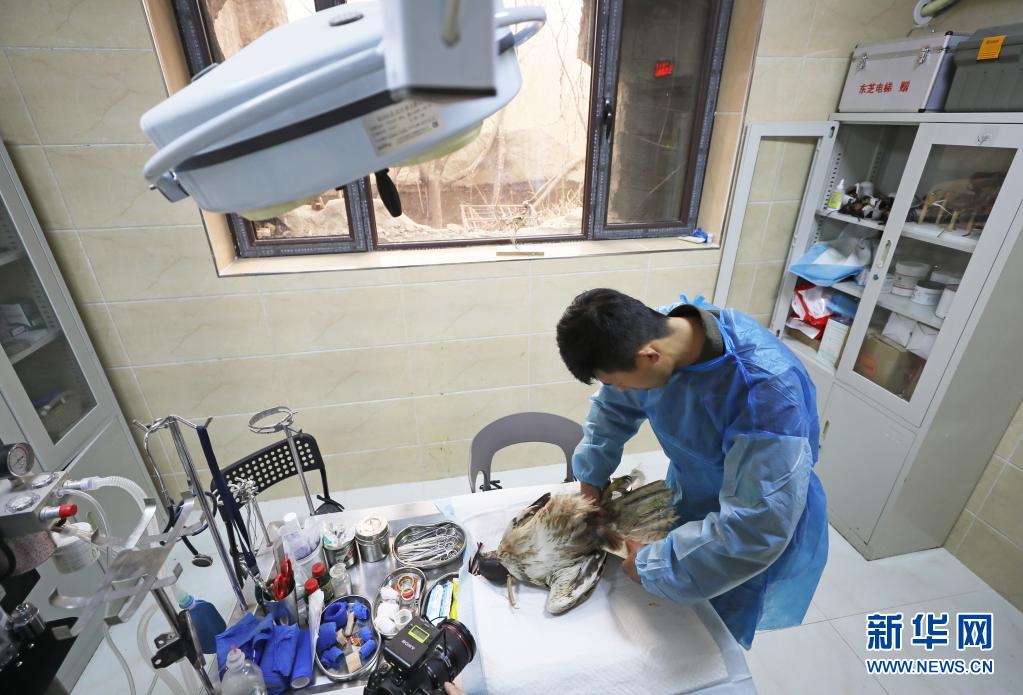在沈阳鸟岛上,坐落着一个特殊的基地,不大的办公区内,禽鸟手术间、CT室、病房、备食间一应俱全。康复笼舍区,一只接受完手术的苍鹰关在集装箱笼子里,志愿者们小心翼翼地打开一扇小窗,为里面投送兔肉。