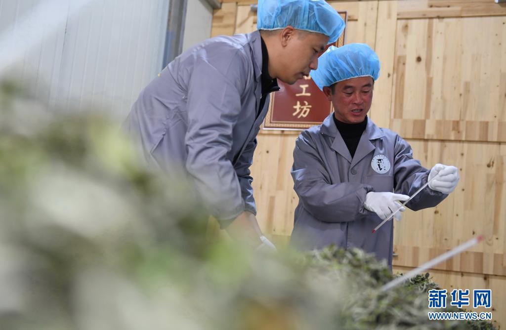 3月31日,李照铁(右)与徒弟王茂传在查看白茶炭焙过程中的火温。