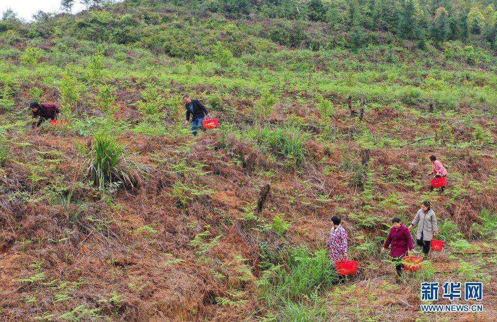4月1日,村民在衡阳市衡东县杨桥镇虎塘村采摘蕨菜。