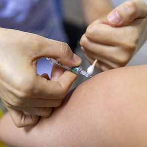 4月1日,在瑞丽市景成医院新冠疫苗接种点,医护人员给市民接种疫苗。