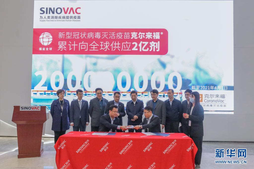 当日,北京科兴中维生物技术有限公司宣布其生产的新冠疫苗克尔来福全球累计发货量达2亿剂。