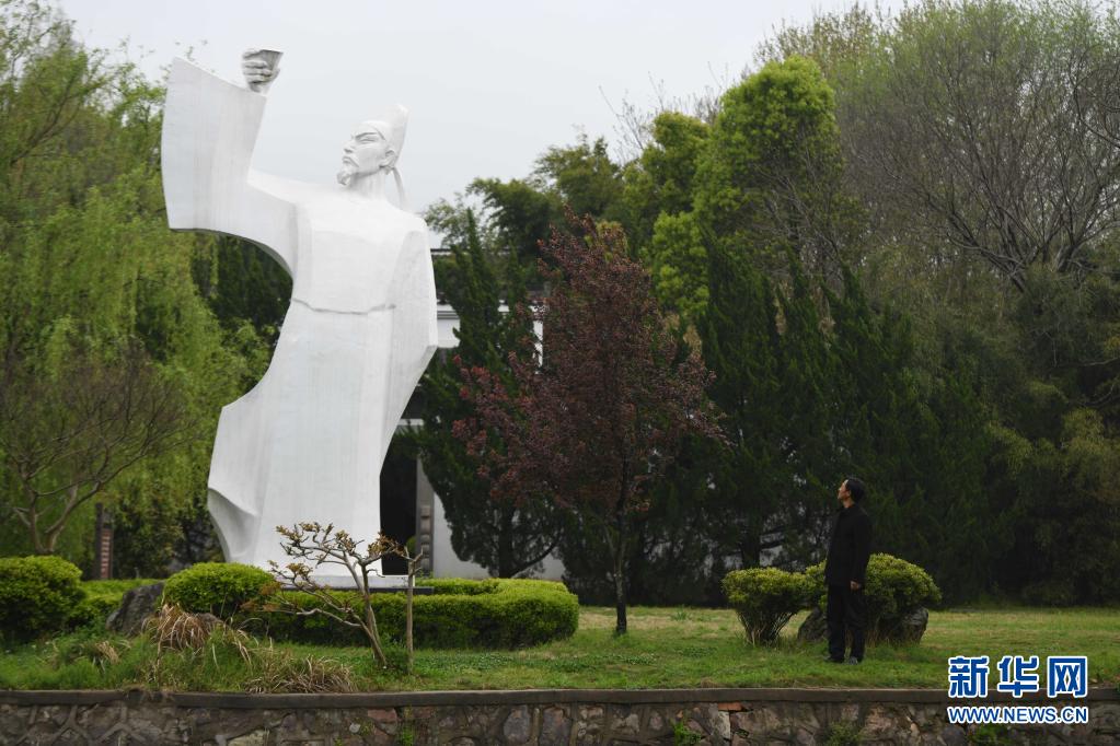 3月31日,谷常新在李白文化园内的李白雕像前驻足。