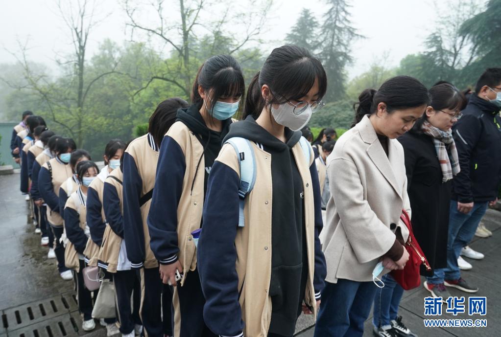 4月2日,师生在南京抗日航空烈士纪念碑广场凭吊先烈。