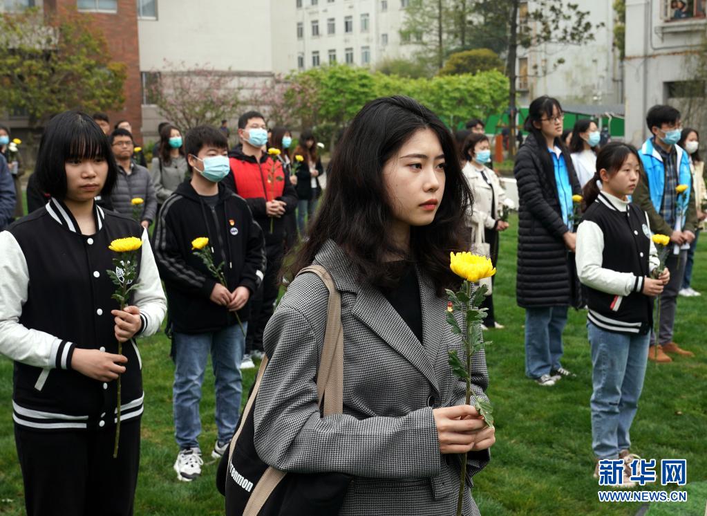 4月2日,复旦大学学生参加追思活动。