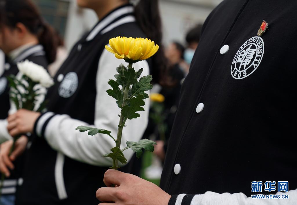 4月2日,复旦大学一名学生党员在参加追思活动。
