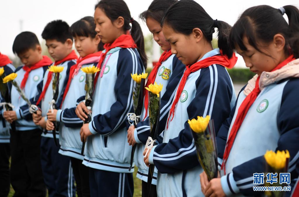 4月2日,肥西县花岗学区中心学校学生为花岗伏击战烈士默哀。