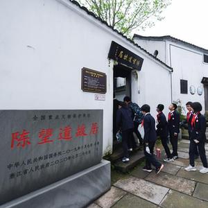 当日,为纪念中国共产党成立100周年,由浙江省义乌市委宣传部、义乌市教育局、城西街道党工委等部门共同组织开展的,追寻“真理的味道”——红色研学启动仪式在浙江省义乌市城西街道分水塘村举行。数百名小学生在老师的带领下开启了红色研学之旅,通过参观陈望道故居、观看红色话剧、走访老战士、听老战士讲革命故事等活动,重温红色革命历史。